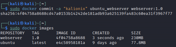 sudo docker commit -a "제작자 이름" ubuntu_webserver webserver:1.0