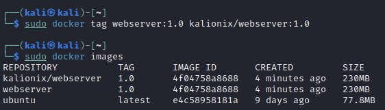 sudo docker tag webserver:1.0 이름/webserver:1.0