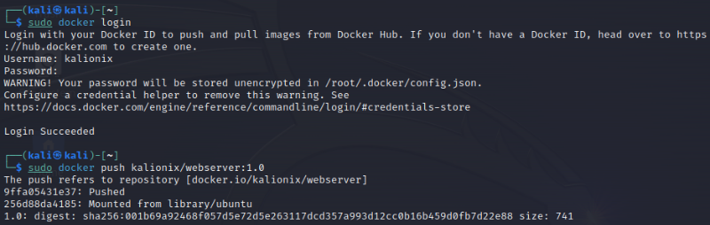 회원가입이 끝나면 다시 칼리 리눅스로 돌아와서 컨테이너의 이미지를 생성한다. 생성은 아래와 같이 commit 명령어를 사용하면 된다. 이후 ps 명령어로 생성된 이미지를 확인할 수 있다.