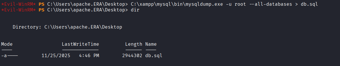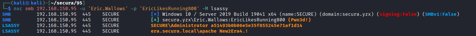 Dumped lsass credentials from memory using nxc’s lsassy module and obtained apahce account for era computer